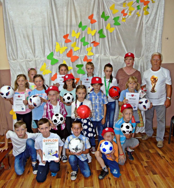 W tym uroczystym dniu wziął udział trener LKS "Dragon" Miszkowice Pan E. Tasior, który wręczył piłki i sportowe czapeczki piłkarkom i piłkarzom, którzy aktywnie uczestniczyli w turniejach gminnych, powiatowych, międzywojewódzkich i ogólnopolskich. ? 17 osób.