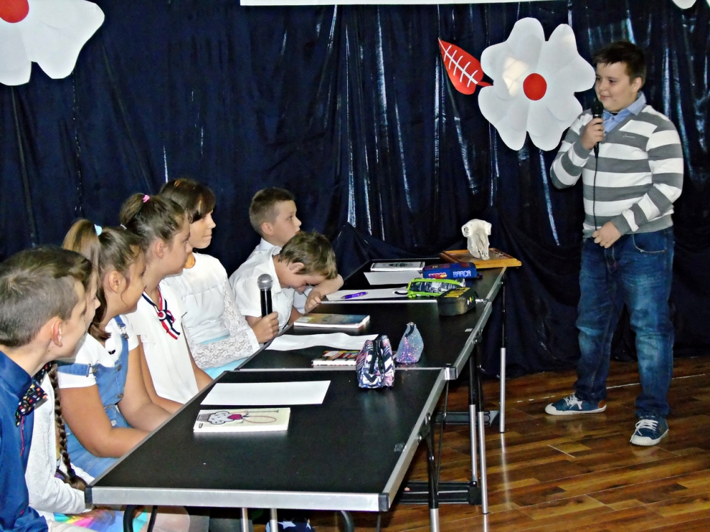 Przewodnicząca Samorządu Uczniowskiego przywitała panią Dyrektor Elżbietę Król, podinspektora do spraw oświaty Bartka Ryszkowskiego, nauczycieli i pracowników obsługi. Uczniowie klasy piątej pod opieką pani Pauliny Dudek przygotowali humorystyczne przedstawienie pt. "Szkoło, szkoło, ale tu wesoło" pokazujące pracę nauczycieli. Uczniowie docenili i podkreślili swoją wdzięczność za codzienny trud, poświęcenie, czujność i troskę o dobro wychowanków.