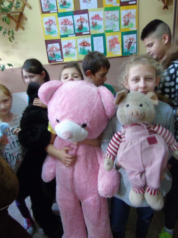 "Czy to jutro, czy to dziś każdemu potrzebny jest miś", pod takim hasłem odbyły się 28 listopada 2016r. w naszej szkole obchody Dnia Pluszowego Misia. W tym dniu wszystkie misie i inni pluszowi przyjaciele dzieci, opuścili swoje zaciszne pokoiki i przybyli wraz z uczniami do szkoły. Na korytarzach zrobiło się kolorowo i "misiowo". Pluszowe maskotki towarzyszyły swoim opiekunom w czasie przerw i na lekcjach. Głównym punktem obchodów "misiowego święta" było zorganizowane przez Samorząd Uczniowski konkursu na największego i najmniejszego pluszowego przyjaciela